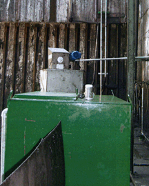 ST-5 - oil/water separator conveyor and oil steaming reservoir fitted with 1.5 인치 steam piping and 35 degree angle stainless steel baffle plate. 스팀에 melting 된 기름/스러지를 임시 저장하고 서서히 중간 탱크에 전달을 유도하는 tank.
